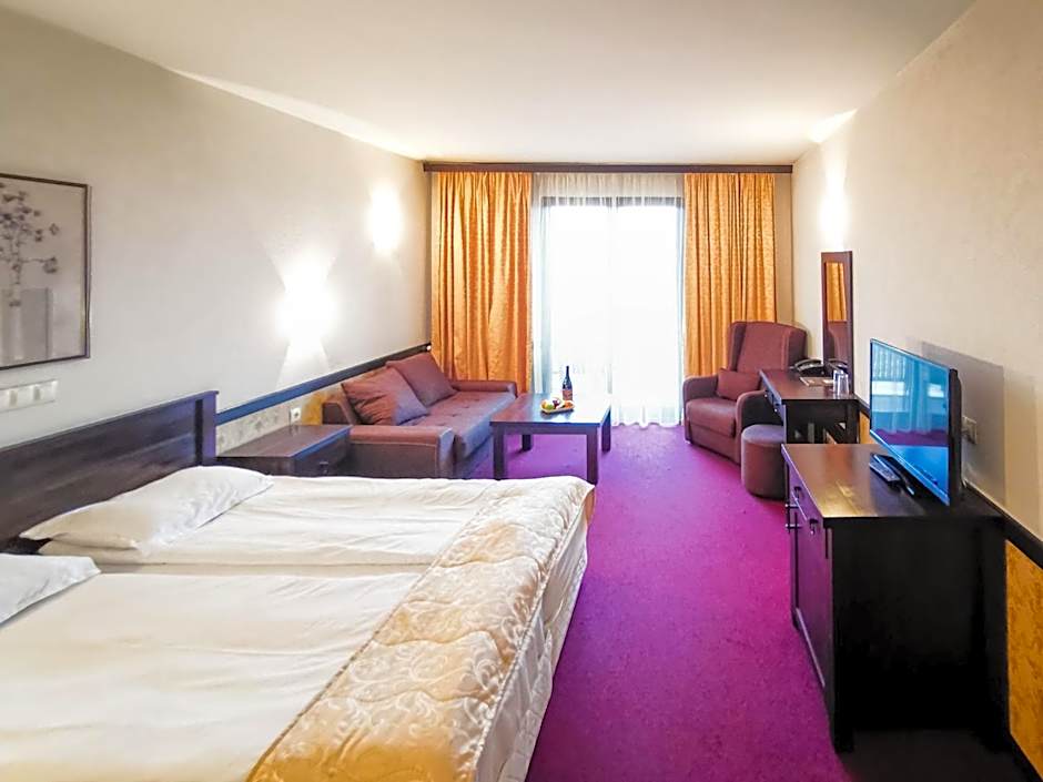 This twin/double room features a cable TV and seating area. Free use of the indoor pools, the sauna and the steam bath are included.